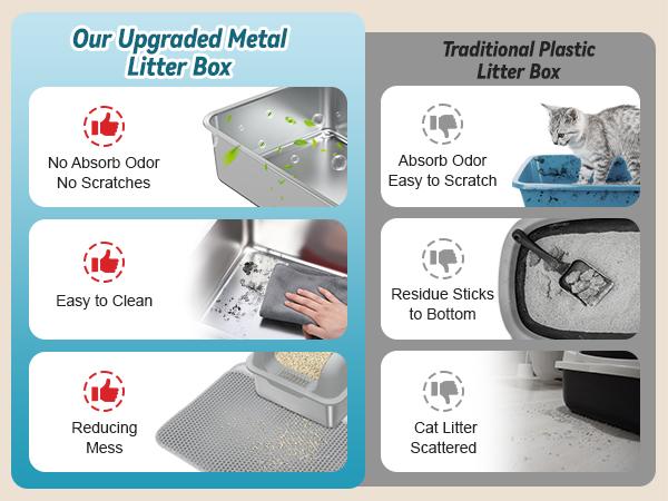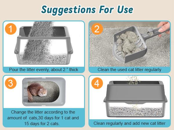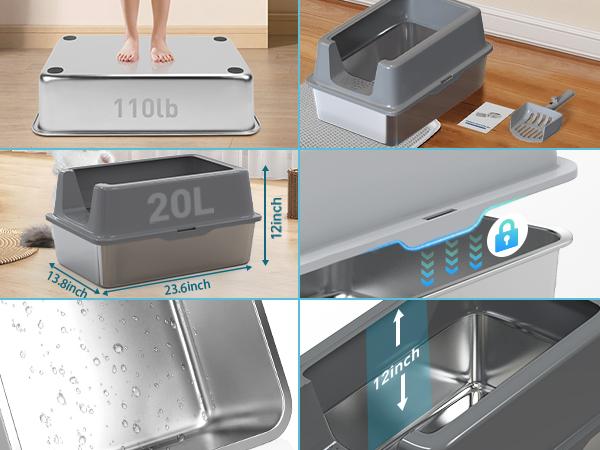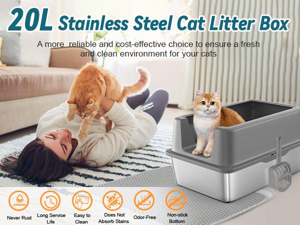 The Anyask Pet open top kitty litter tray is crafted from stainless steel, making it sturdy and durable. Its rounded edges ensure safety for your cat, and the non-slip rubber base keeps it stable. The open design allows easy entry and exit, while the tall walls keep litter and spraying contained.
