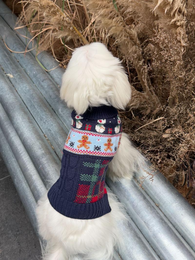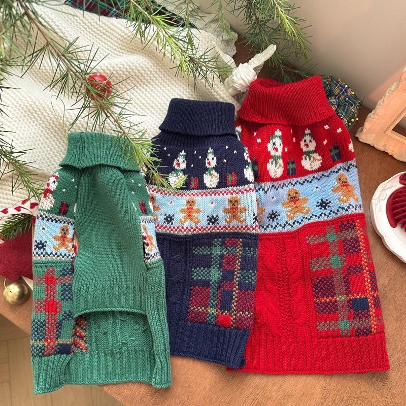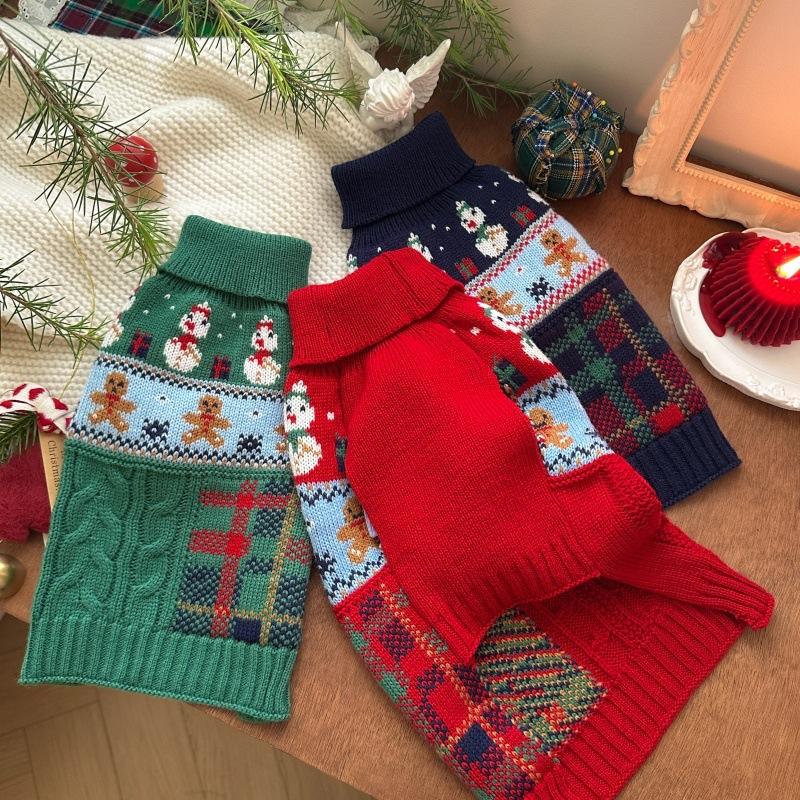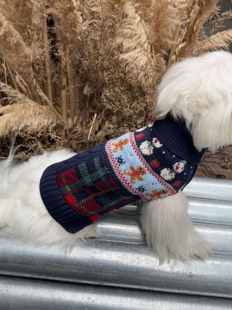 Snowman & Gingerbread Christmas Sweater – Cozy Winter Style for Small Pets